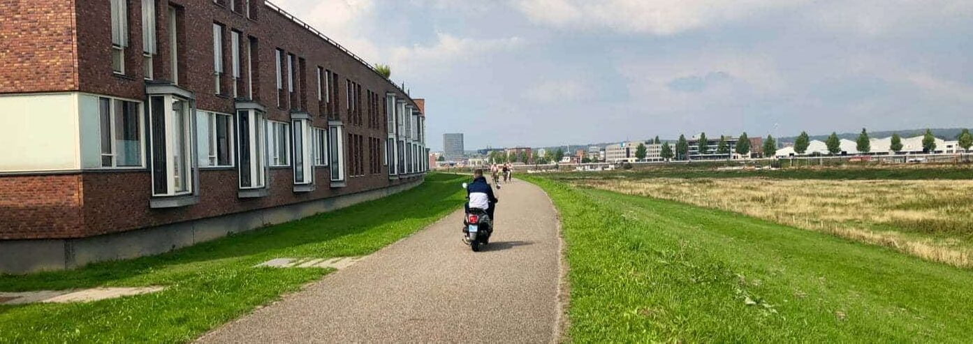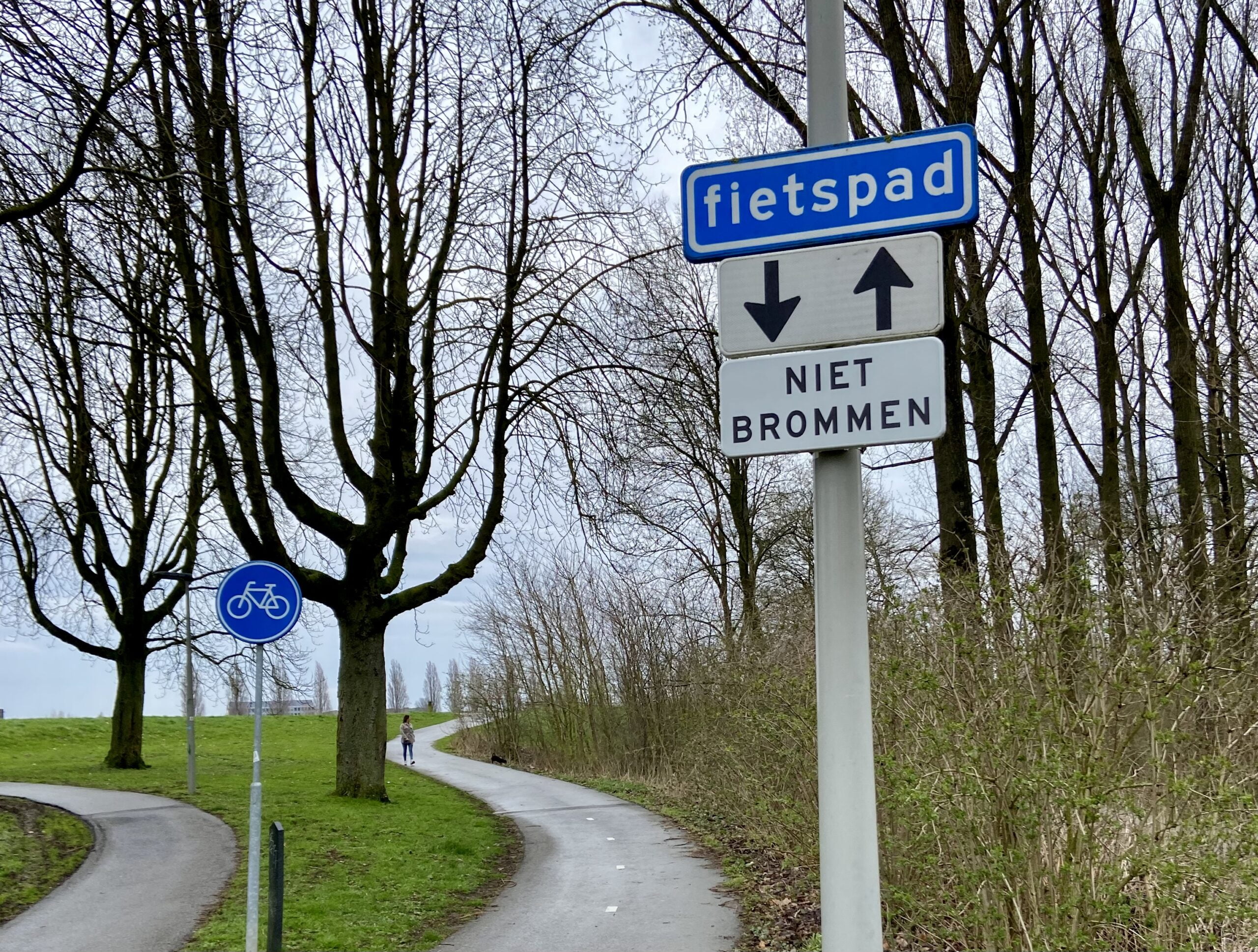 Dit fietspad is een recreatie fietspad . Blauwe ronde bord met fiets. Op dit pad zijn wel electrische scooters met een constructie snelheid van 25km toegestaan. Het is verboden voor aangedreven brandstof brommers/ scooters . Ze mogen wel met uitgeschakelde motor fietsend rijden.