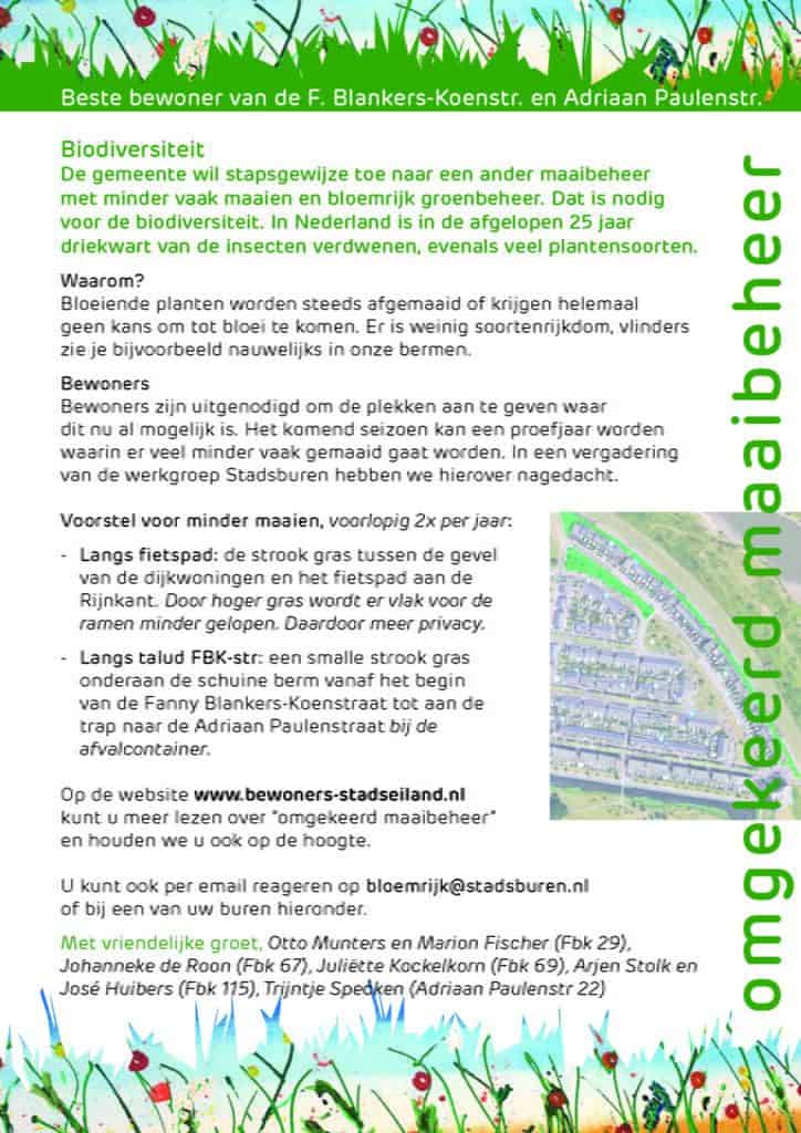 Dit is de folder die in de Fanny Blankers-Koenstraat en Adriaan Paulenstraat verspreid is: